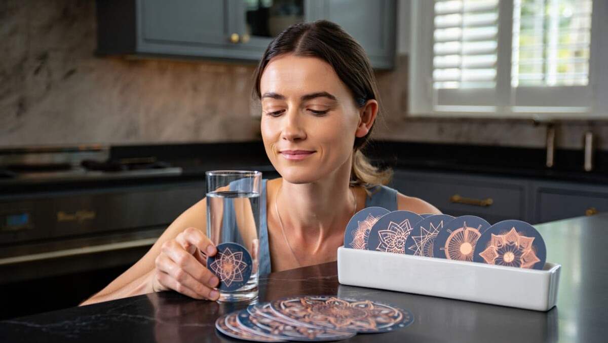 Просто положите мандалу под стакан с водой. Никаких сложных манипуляций.